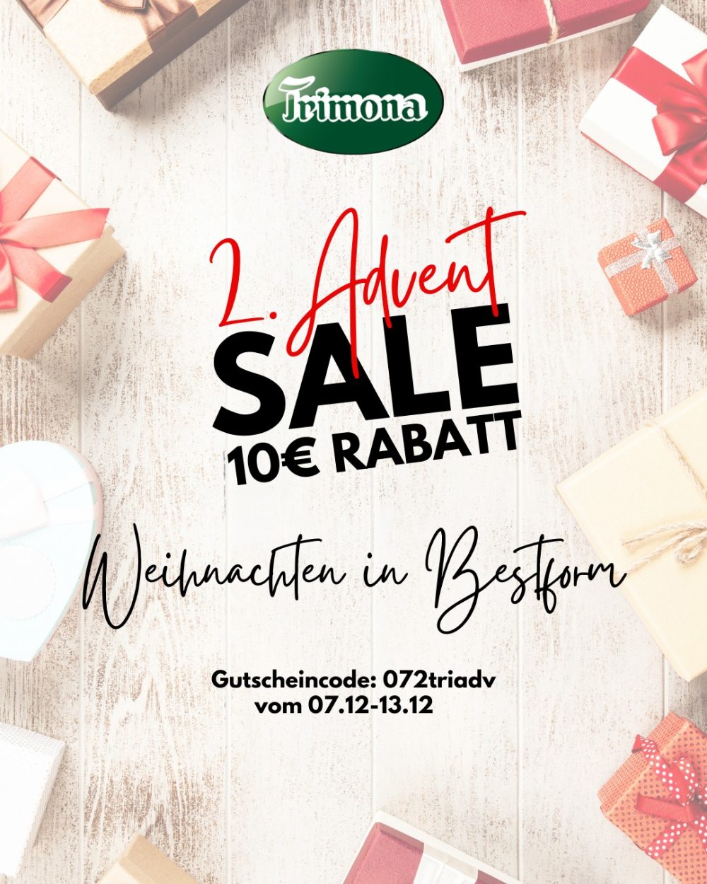 +++2.Advents-Sale+++ Jede Woche bekommt Ihr neue Angebote für Produkte aus unserem Onlineshop. Mit dem Code “301triadv” erhaltet Ihr 10€ Rabattab einem Einkaufswert […]
